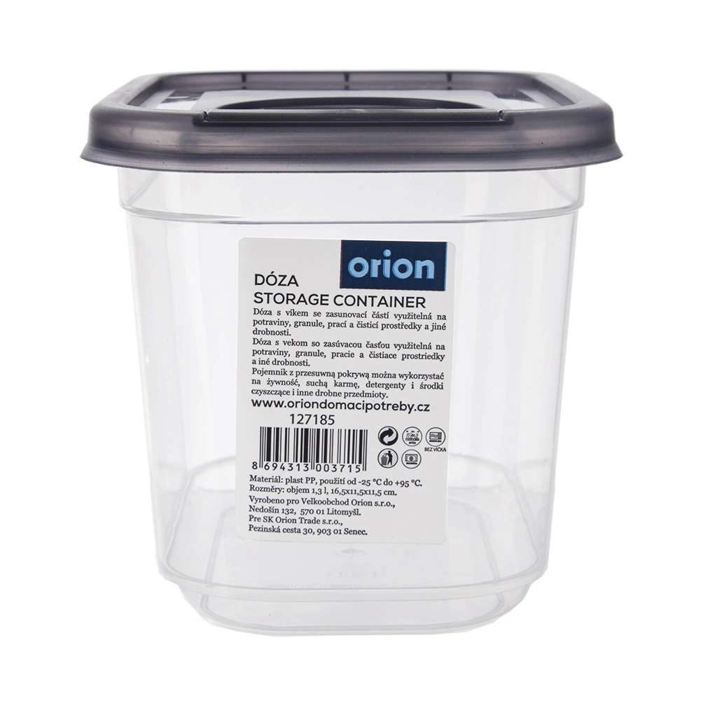 Práctico dispensador para alimentos secos con tapa dosificadora integrada de 1,3 l que mantiene tus ingredientes frescos por más tiempo y bien organizados. Gracias al cuerpo transparente, siempre tienes el contenido bajo control, mientras que la tapa hermética y la abertura dosificadora facilitan el uso diario. Fabricado en plástico libre de BPA, apto para nevera, congelador y lavavajillas y para calentar en microondas sin tapa.