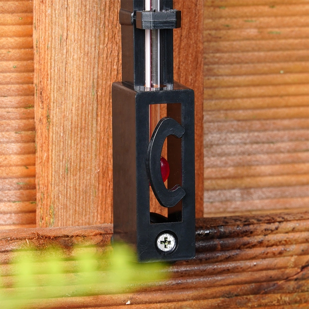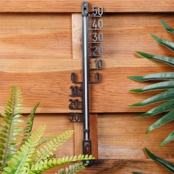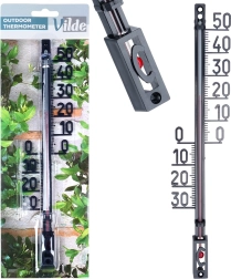 El práctico y elegante termómetro VILDE mide con precisión la temperatura del aire ambiente tanto en interiores como en exteriores. Gracias a los números grandes y a la escala de alto contraste, es fácil de leer incluso desde mayor distancia. Su diseño negro elegante encaja perfectamente en la pared de la casa, la valla, el balcón o el recibidor.
