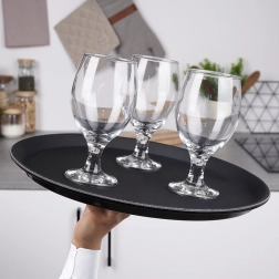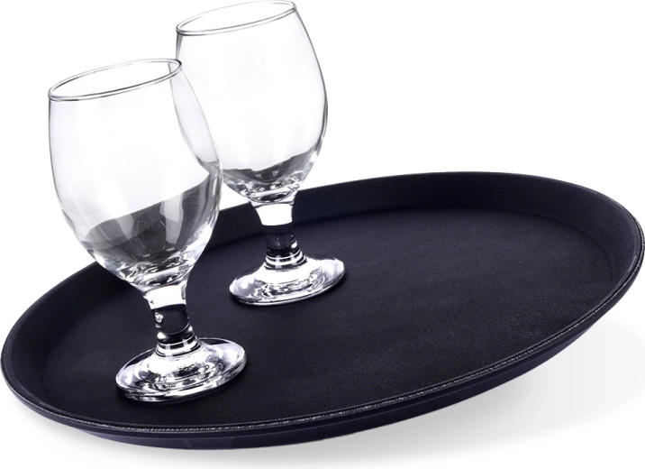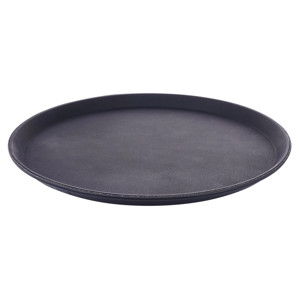 La bandeja redonda negra es un ayudante fiable para el servicio en cafeterías, restaurantes y en casa. Gracias al acabado antideslizante, los vasos y platos se mantienen firmes incluso con movimientos rápidos, mientras que el borde elevado evita que los objetos se deslicen.