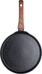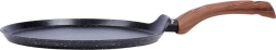 Elegante sartén para crepes de 24 cm de diámetro con superficie antiadherente de granito para freír de forma saludable con un mínimo de grasa. Gracias a la rápida y uniforme distribución del calor prepararás crepes, tortitas y tortillas perfectamente finas. El mango ergonómico con decoración efecto madera se adapta muy bien a la mano y facilita la manipulación. Apta para gas, electricidad, vitrocerámica, halógeno e inducción y lavavajillas.