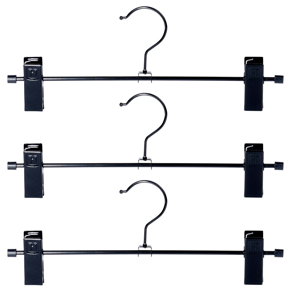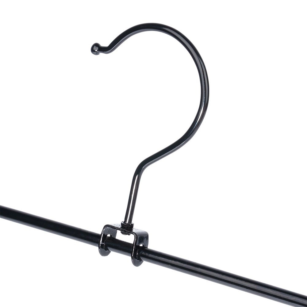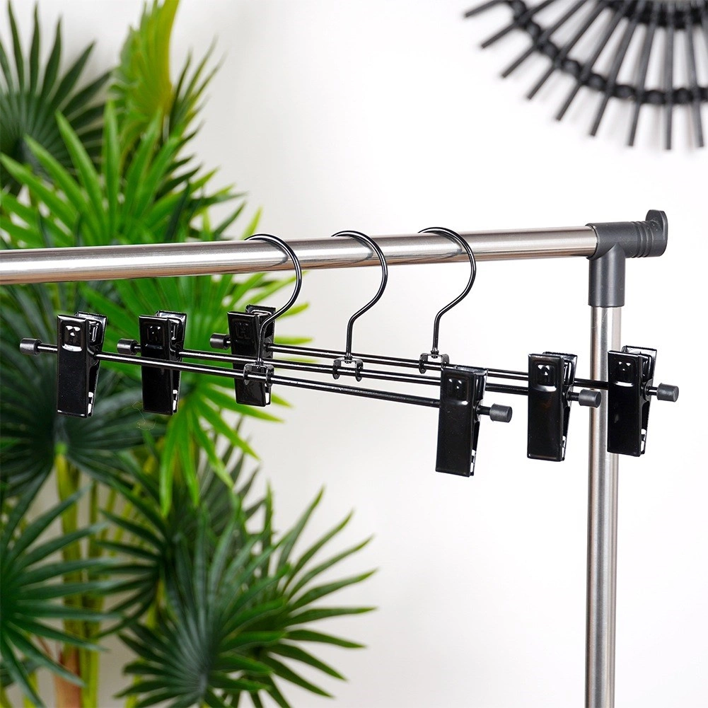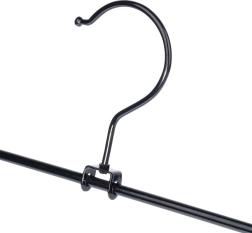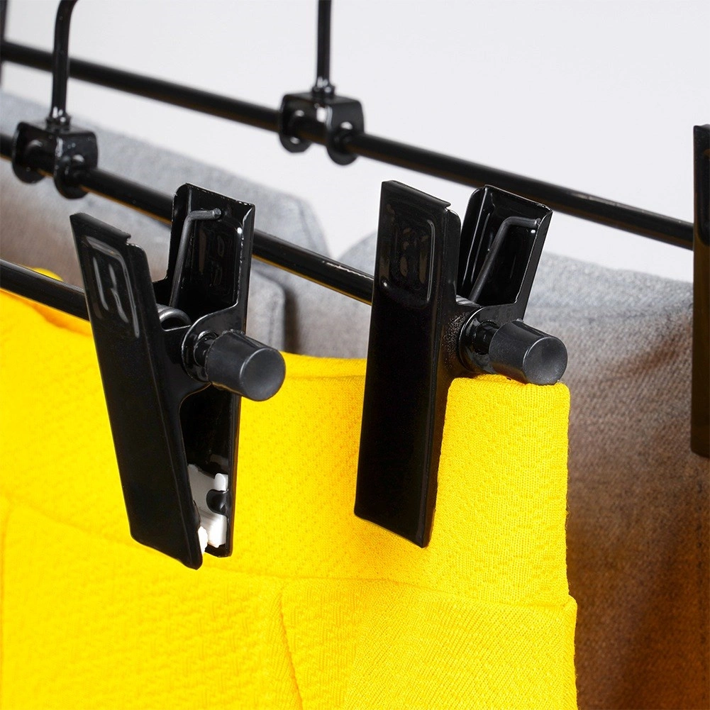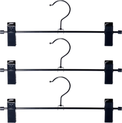 El juego de 3 perchas robustas con pinzas es ideal para una organización clara del armario. Las pinzas ajustables con inserciones protectoras sujetan la tela con firmeza sin dañarla y evitan que se deslice. El metal con recubrimiento en polvo en color negro es fácil de mantener y luce elegante en cualquier armario.