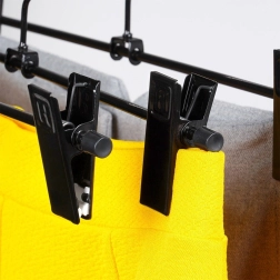 Las pinzas deslizantes con muelle potente sujetan de forma fiable distintos tipos de tejidos y tallas, desde prendas infantiles hasta pantalones y faldas para adultos.