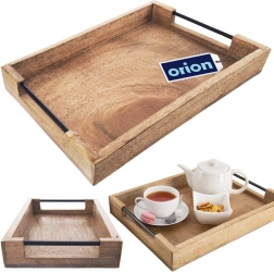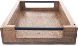 Elegante bandeja de servicio de madera de mango que combina el aspecto natural con el estilo industrial loft. Gracias a sus bordes altos y asas metálicas robustas en color negro, transportar tazas, teteras, vasos o platos es fácil y seguro. La veta natural de la madera añade un carácter excepcional a tu mesa.