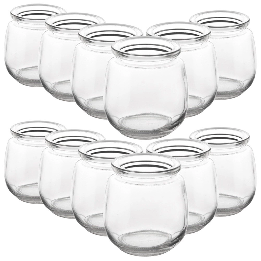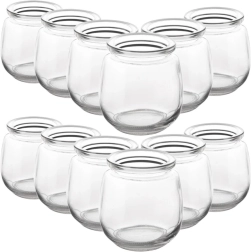 Elegantes vasitos de vidrio de 200 ml en un práctico juego de 12 unidades, ideales para servir yogures, postres, mermeladas caseras o pequeños aperitivos. Fabricados en vidrio transparente y grueso para una larga durabilidad, con boca ancha para un llenado y limpieza fáciles. Aptos para lavavajillas, nevera y congelador (hasta +80 °C).