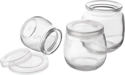 El juego de tapas está diseñado para ajustarse con precisión a tarros de 300 ml y 6,8 cm de diámetro. Gracias al cierre firme a presión, ayuda a mantener yogures, postres, untables u otras delicias frescos por más tiempo y protegidos de olores e impurezas.