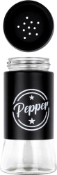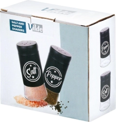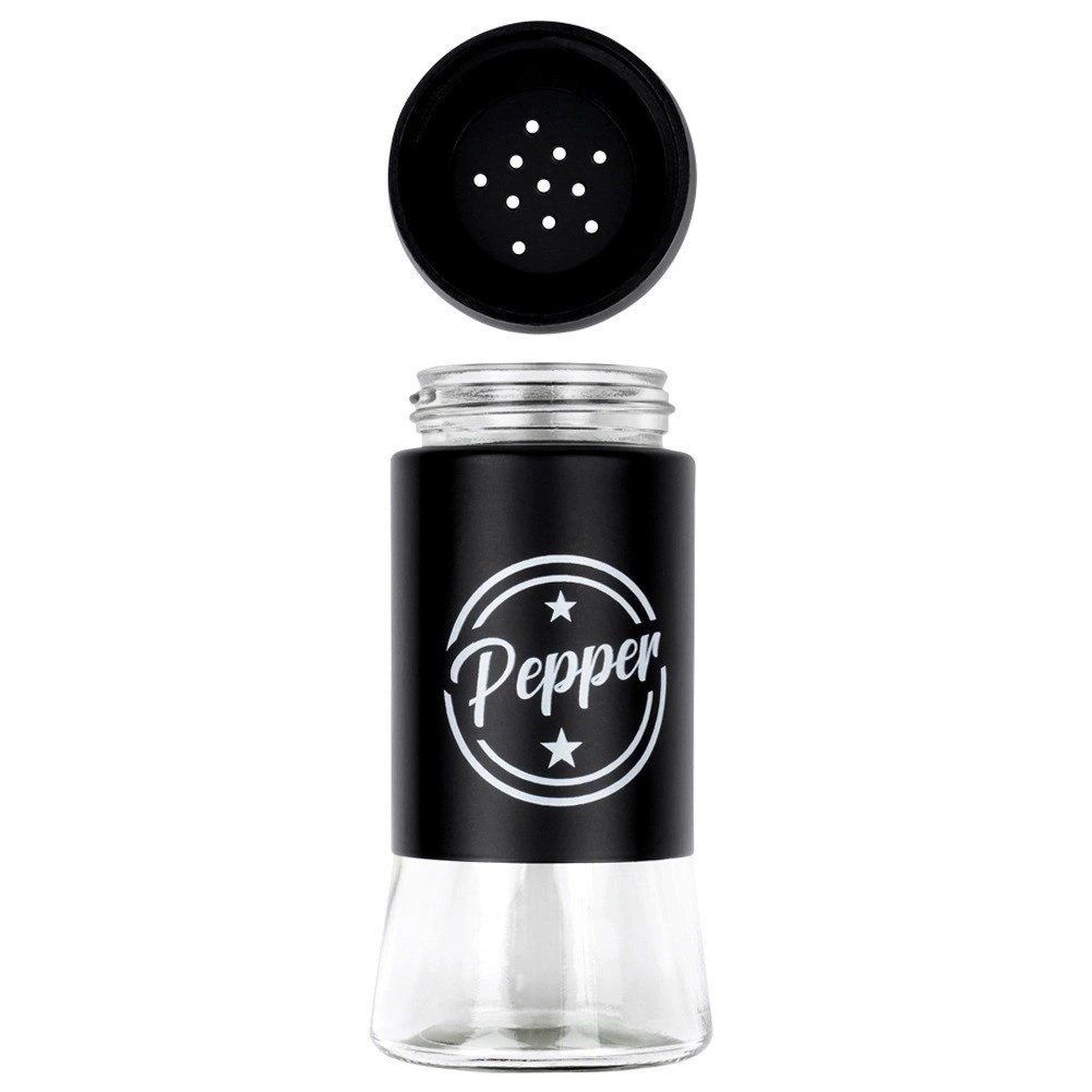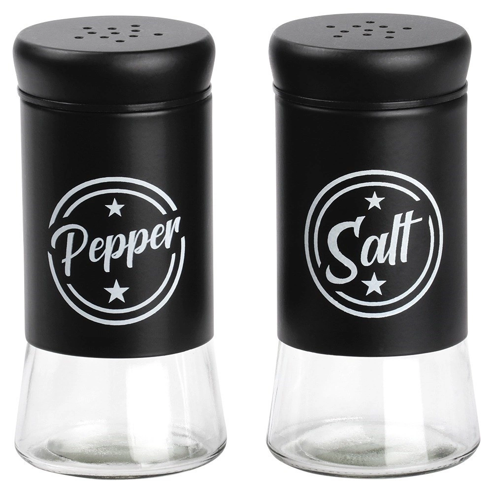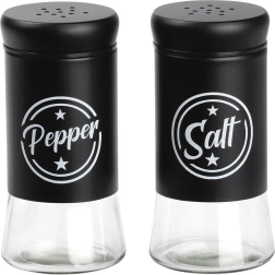 El set incluye dos especieros de 140 ml con base de vidrio transparente y parte superior metálica en negro mate. Las tapas prácticas con orificios permiten un espolvoreado uniforme y ayudan a mantener la frescura y el aroma de las especias por más tiempo. Gracias a las inscripciones claras Salt y Pepper siempre identificarás el recipiente correcto al instante.