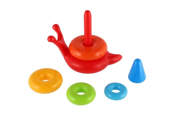 El juguete tiene una base con forma de caracol con bonitas orejitas y una sonrisa, que aporta alegría y diversión al juego diario.
