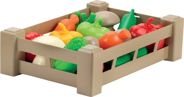 Esta realista caja de plástico está llena de llamativas réplicas de frutas y verduras que estimulan la imaginación infantil y ayudan a desarrollar la motricidad fina. Ideal para cocinitas infantiles, rincones de juego y guarderías.