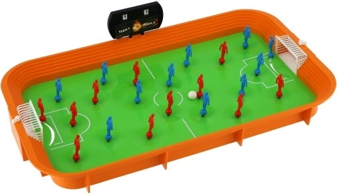 Estructura ligera y resistente de plástico, dos porterías y equipos de figuras de colores. Ideal para la habitación infantil, el salón e incluso para llevar de viaje.
