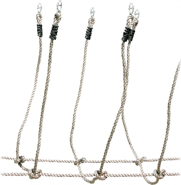 El puente de cuerda SMALL FOOT es un excelente complemento para el jardín o el parque infantil. Ofrece a los niños una forma divertida y segura de entrenar el equilibrio, la fuerza de agarre y las habilidades de coordinación. La instalación, gracias a los ojales metálicos, es cuestión de minutos: basta con tensar el puente entre dos puntos firmes, idealmente árboles.
