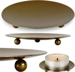 Descubra un accesorio con estilo y funcional para su hogar: un soporte metálico para velas en dorado mate. El platillo bajo con tres patas esféricas garantiza una excelente estabilidad y una ligera elevación sobre la superficie, lo que ayuda a disipar el calor y a proteger los muebles de la cera y el calor. Su aspecto minimalista combina fácilmente con cualquier estilo de interior.