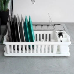 La resistente estructura de plástico es ligera, higiénica y fácil de lavar. Su diseño atemporal encaja en cocinas modernas y tradicionales y garantiza una circulación de aire rápida para un secado más veloz sin marcas de humedad en la encimera.