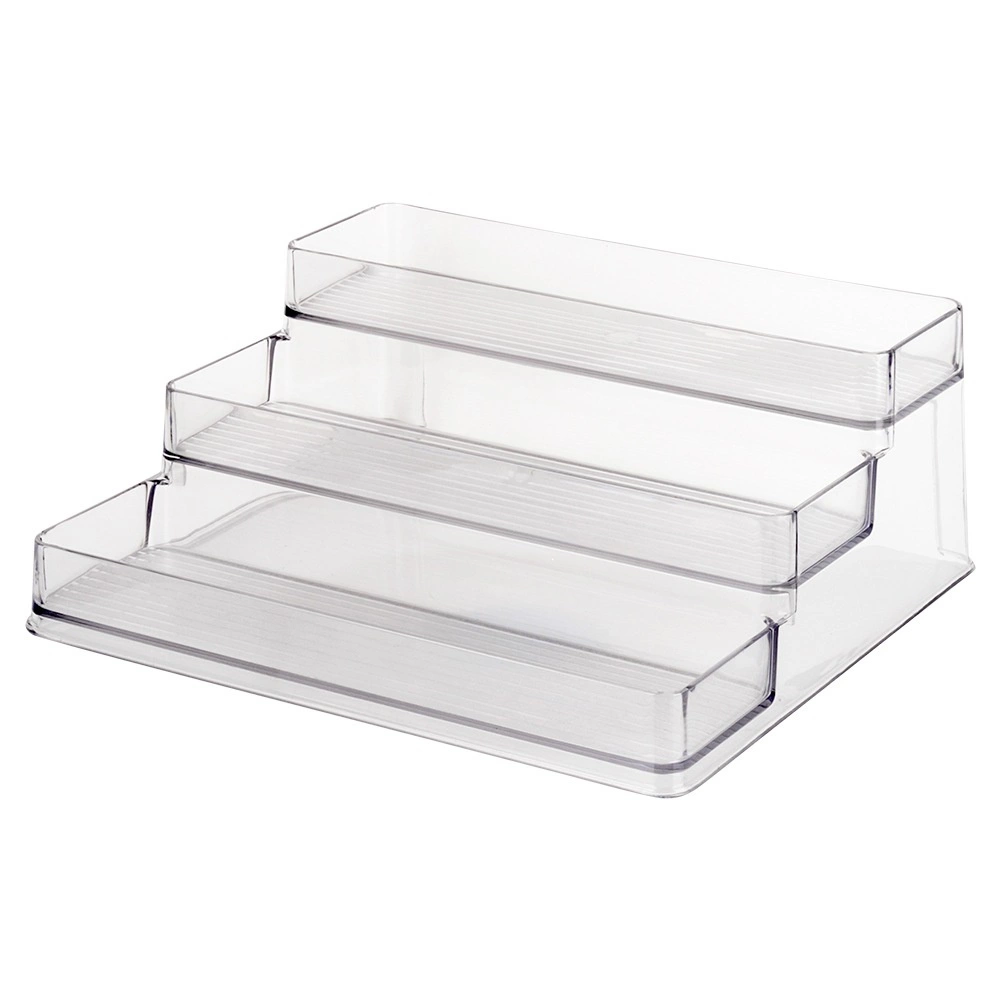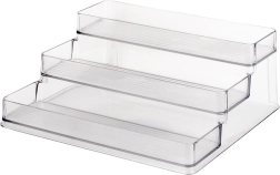 Este organizador-estantería universal de tres niveles, hecho de plástico transparente, mejora al instante el orden y la visibilidad en tu cocina, baño o despensa. El material transparente permite encontrar rápidamente el ingrediente o cosmético necesario, mientras que la construcción escalonada ahorra espacio y aumenta la capacidad.