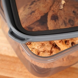 La tapa se ajusta con precisión y ayuda a mantener los alimentos frescos por más tiempo. La caja está hecha de plástico de alta calidad y resistente en color gris translúcido moderno; es inocua para la salud y puede lavarse en el lavavajillas. Al adquirir varias unidades, se pueden apilar fácilmente para ahorrar espacio en los armarios.