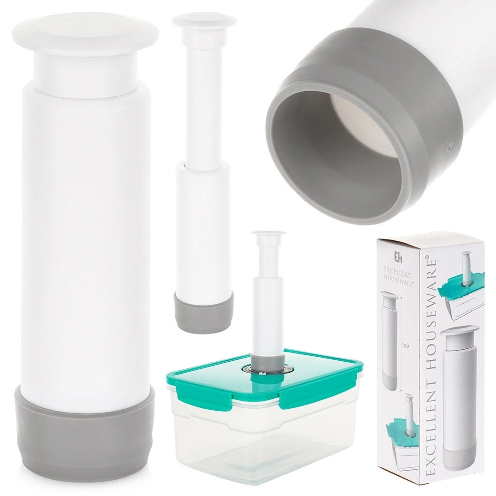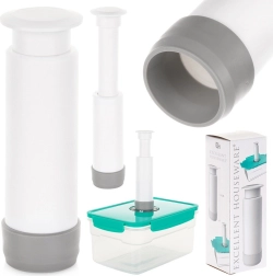 Compacta bomba de vacío manual de 13,5 cm para extraer rápidamente el aire de bolsas y recipientes al vacío. Al crear un cierre hermético al vacío, ayuda a mantener los alimentos frescos por más tiempo, conservar sabor, vitaminas y nutrientes y reducir el desperdicio de comida. Ligera, ergonómica y fácil de usar; la base de goma garantiza una adherencia firme y estabilidad durante el uso.