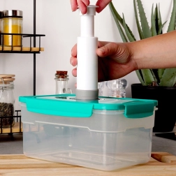 La práctica bomba de vacío es un ayudante ideal para el almacenamiento de alimentos en el hogar. Al extraer el aire de recipientes y bolsas, crea condiciones sin oxígeno que ralentizan la proliferación de bacterias y mohos, lo que prolonga significativamente la vida útil y preserva el sabor y aroma naturales de los alimentos.