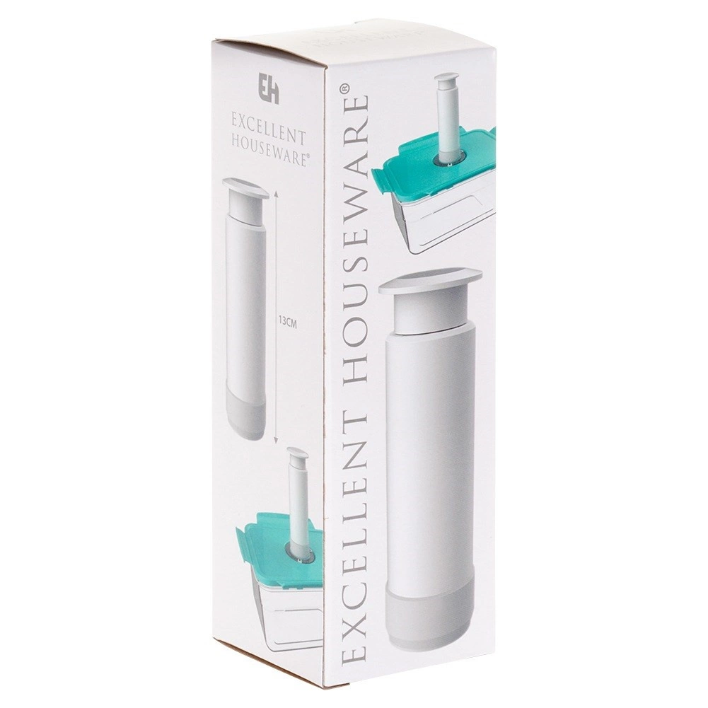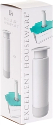 La construcción robusta en plástico de calidad en color blanco y base de goma gris para una mejor adherencia garantizan una hermeticidad fiable y un uso cómodo. Sus dimensiones compactas (4 × 13,5 cm) permiten llevar la bomba a cualquier parte: perfecta para la cocina, la casa de campo o los viajes.