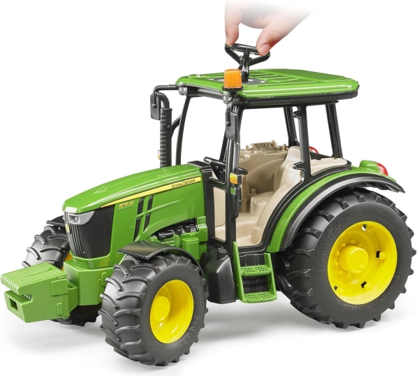 Descubre el detallado modelo del tractor JOHN DEERE 5115M a escala 1:16, que encantará tanto a pequeños granjeros como a coleccionistas. Gracias al plástico ABS de calidad, el tractor es resistente para el juego diario y además destaca por los detalles fieles a la máquina real. La dirección se resuelve con un volante alargado que se introduce fácilmente a través del techo deslizante, haciendo que maniobrar resulte muy intuitivo para los niños.
