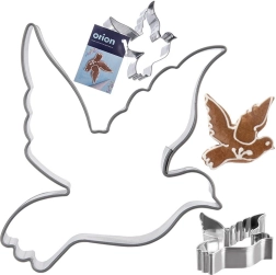 Práctico cortador de acero inoxidable con forma de paloma con alas para crear fácilmente galletas, pan de jengibre y decoraciones de fondant. Gracias a sus dimensiones de 6 × 5 cm y al acero inoxidable resistente, realiza contornos limpios, tiene un uso versátil en la cocina y es apto para lavavajillas.