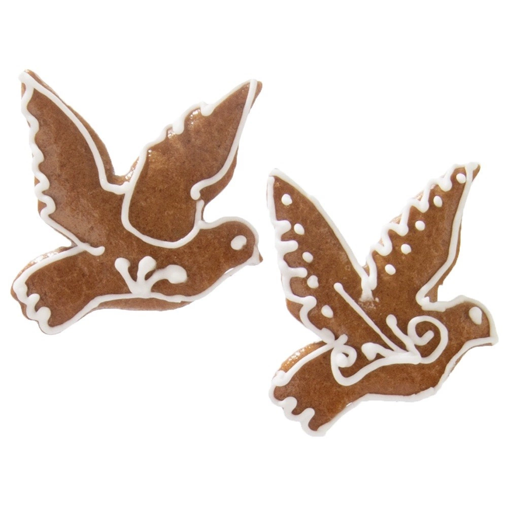 Crea galletas y pan de jengibre con forma de paloma, símbolo de paz y elegancia nupcial. El cortador de acero inoxidable de alta calidad trabaja con masa, fondant y mazapán, y mantiene una forma precisa gracias a sus bordes firmes y lisos.