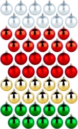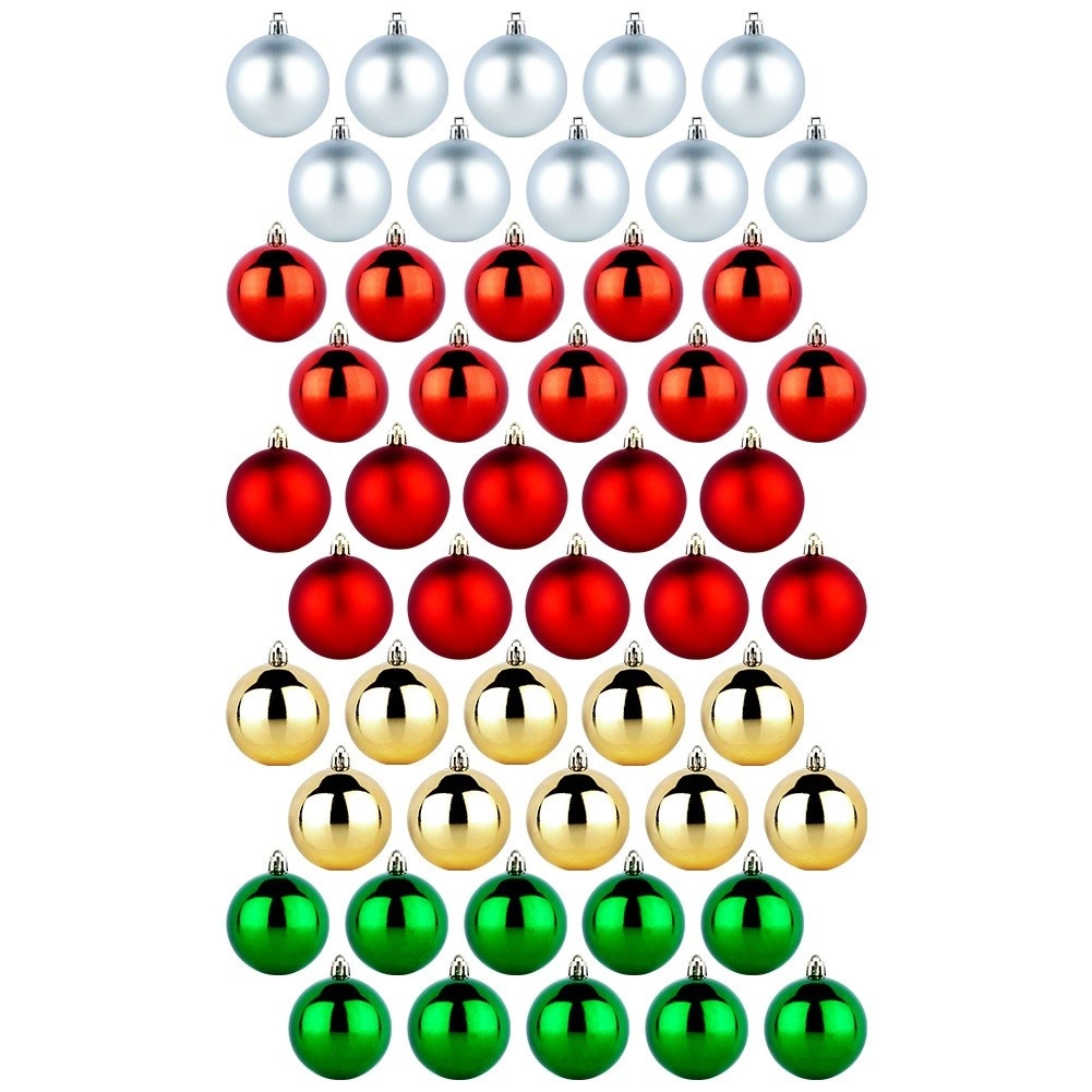 Crea en casa un ambiente festivo mágico con este versátil set de 50 bolas navideñas. El material plástico es altamente resistente a los golpes, por lo que los adornos son seguros y prácticos para familias con niños y mascotas. Gracias a la combinación de brillo y mate en colores populares, armonizarás tanto decoraciones modernas como tradicionales.