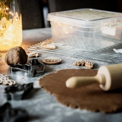 Úsala para almacenar panadería, dulces, galletas de jengibre y galletas, así como sobras de comida, tentempiés, adornos o materiales para manualidades. La caja es resistente a temperaturas de -20 °C a 95 °C, se puede lavar en lavavajillas y calentar en microondas (sin la tapa).