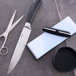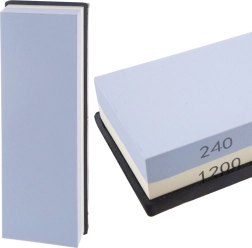 Lado grueso #240 para restaurar rápidamente el filo, lado fino #1200 para el acabado y pulido: la combinación ideal para el cuidado completo de los cuchillos.