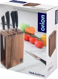 La disposición de las ranuras permite el almacenamiento universal de cuchillos de distintos materiales (acero, cerámica y combinados), incluidas las tijeras de cocina. Las patas antideslizantes evitan el movimiento y protegen la superficie de trabajo de arañazos. Gracias a sus dimensiones compactas, no ocupa espacio innecesario y aun así alberga gran cantidad de utensilios.