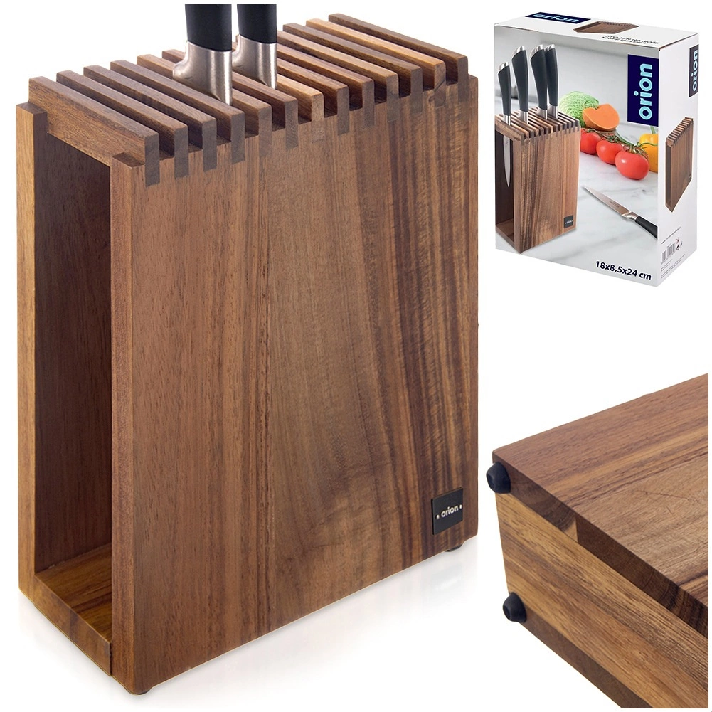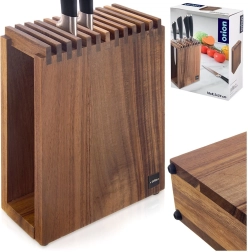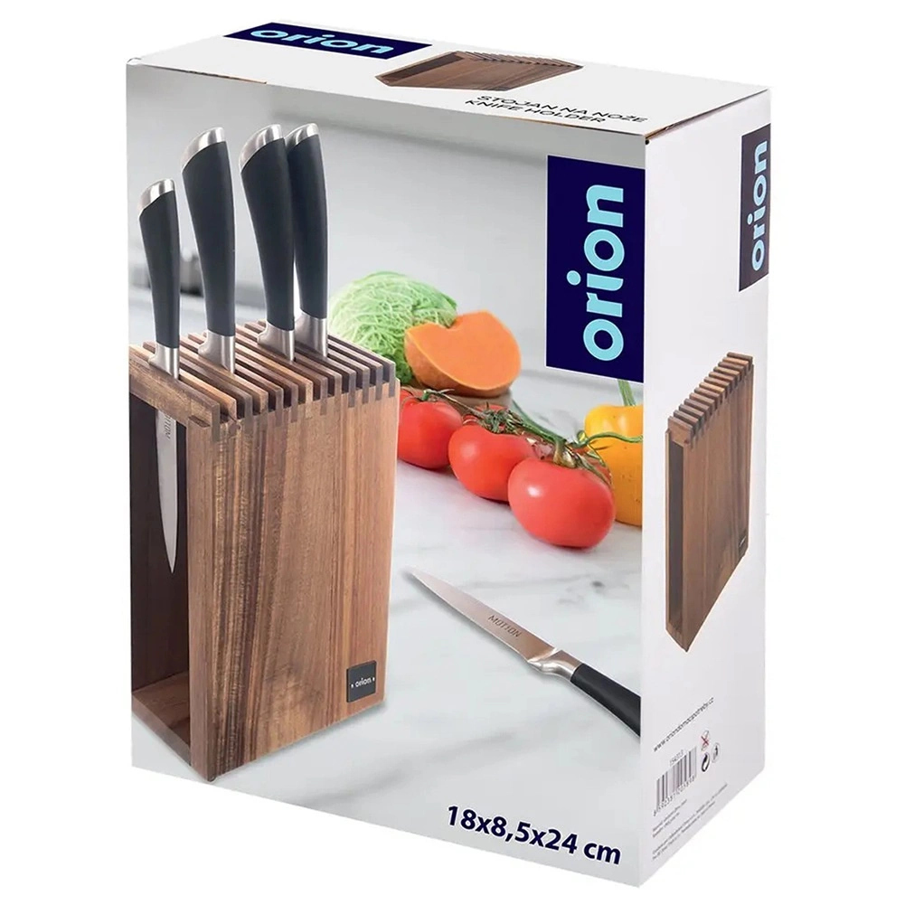Este soporte prémium de madera de nogal combina funcionalidad y estética. Organiza con claridad tus cuchillos de cocina, protege sus filos y, al mismo tiempo, los tendrás siempre a mano. El tono marrón natural del nogal aporta a la cocina un acento cálido y elegante.