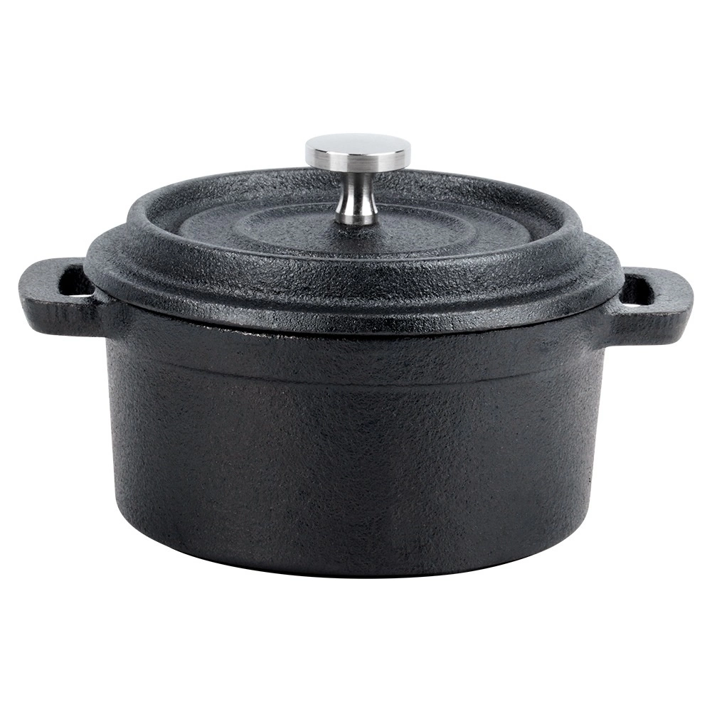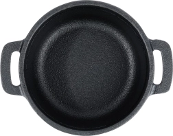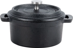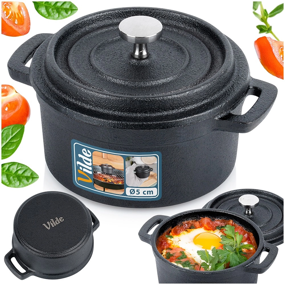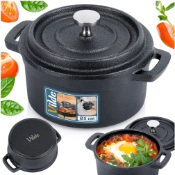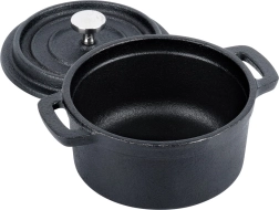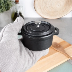 Esta mini olla de hierro fundido tipo cocotte destaca por su construcción resistente y versatilidad. Es apta para cocina, fuego directo y horno, por lo que podrás preparar y servir fácilmente sopas, salsas, platos gratinados, verduras o postres.
