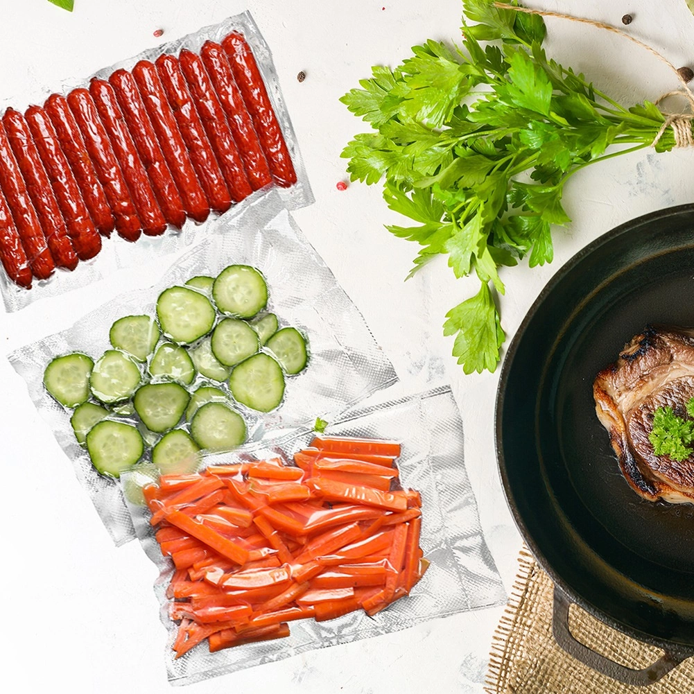 La superficie texturizada favorece la extracción eficiente del aire y un sellado fiable con las envasadoras de sobremesa más comunes para un uso sencillo a diario.