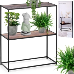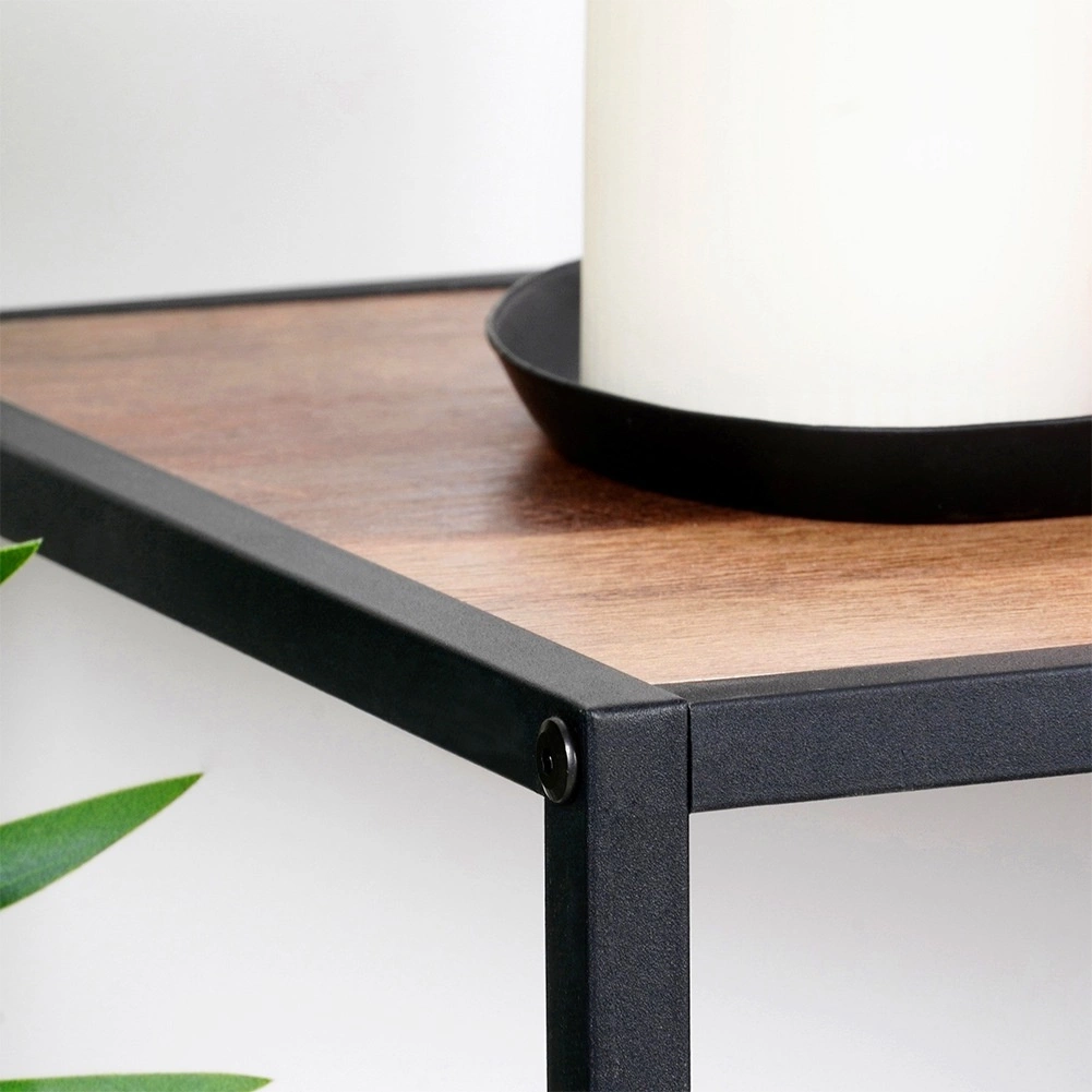 Esta estantería de dos niveles con dimensiones de 70 × 30,5 × 85 cm es ideal para un almacenamiento ordenado y para exhibir con estilo decoraciones, libros, plantas o accesorios de baño y cocina. El bastidor metálico robusto en color negro combinado con baldas de MDF con acabado efecto madera crea un look industrial moderno que se adapta a la mayoría de interiores.