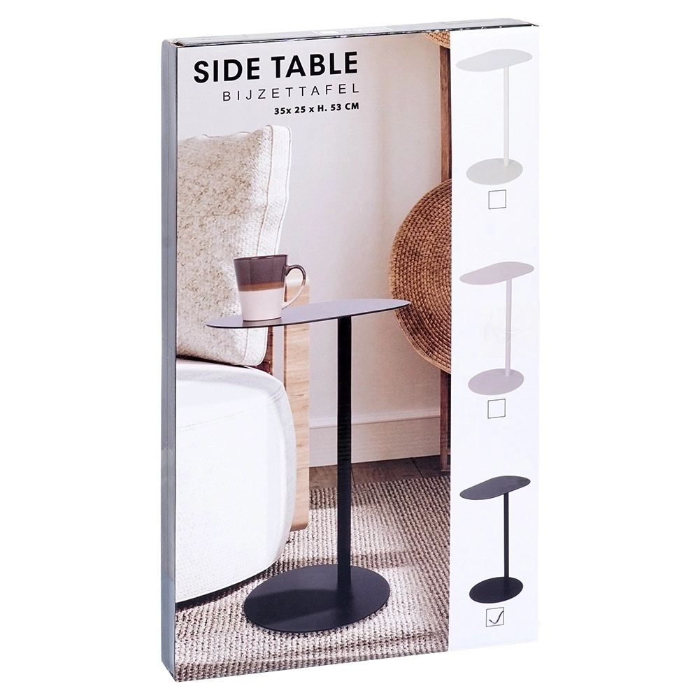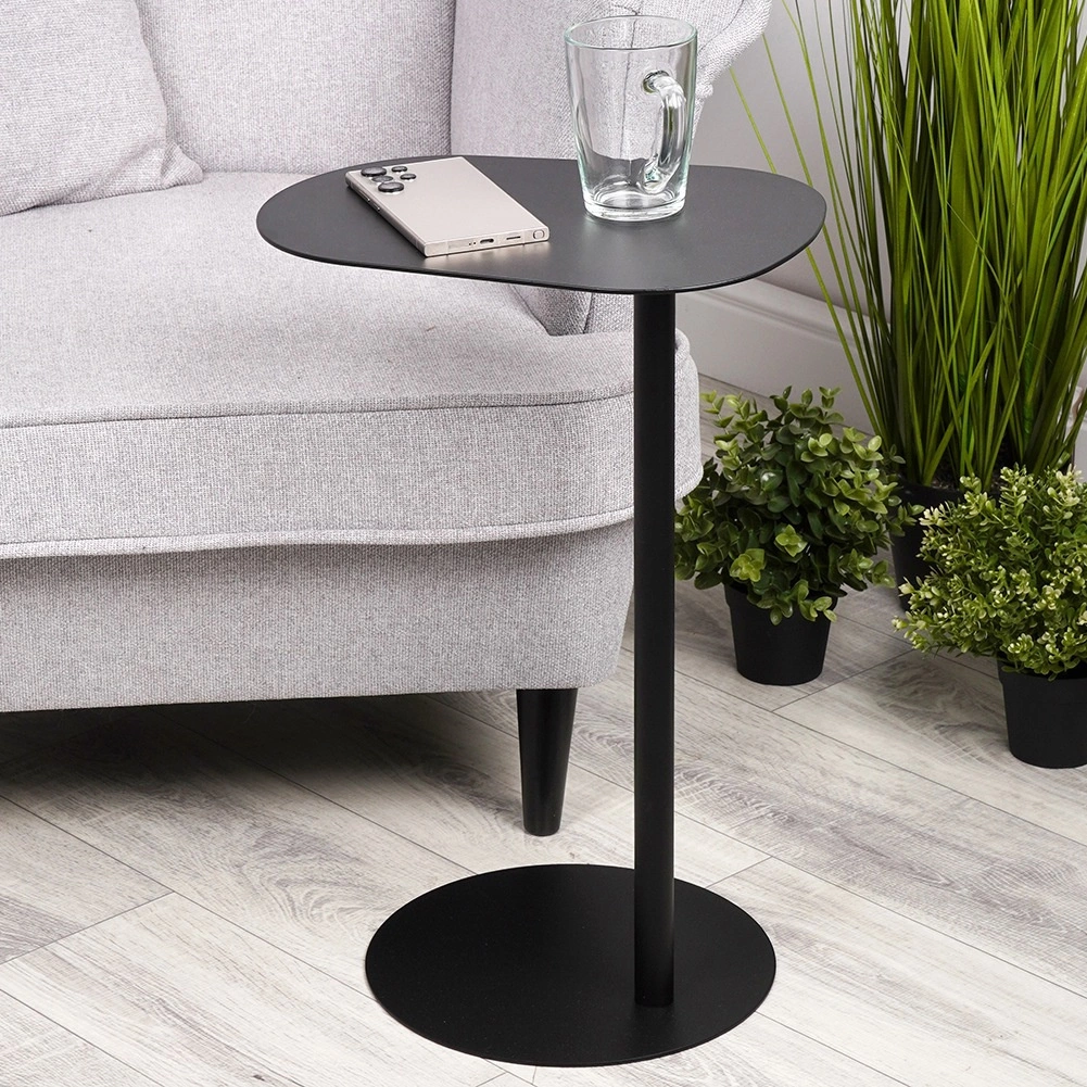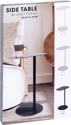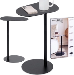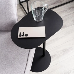 La mesa auxiliar minimalista es ideal como superficie para café, teléfono, mandos o portátil. La estructura totalmente metálica con acabado negro mate luce elegante y combina fácilmente con estilos modernos y clásicos. Gracias a su pata esbelta y a la base circular de 27 cm de diámetro, se mantiene estable sin ocupar mucho espacio.