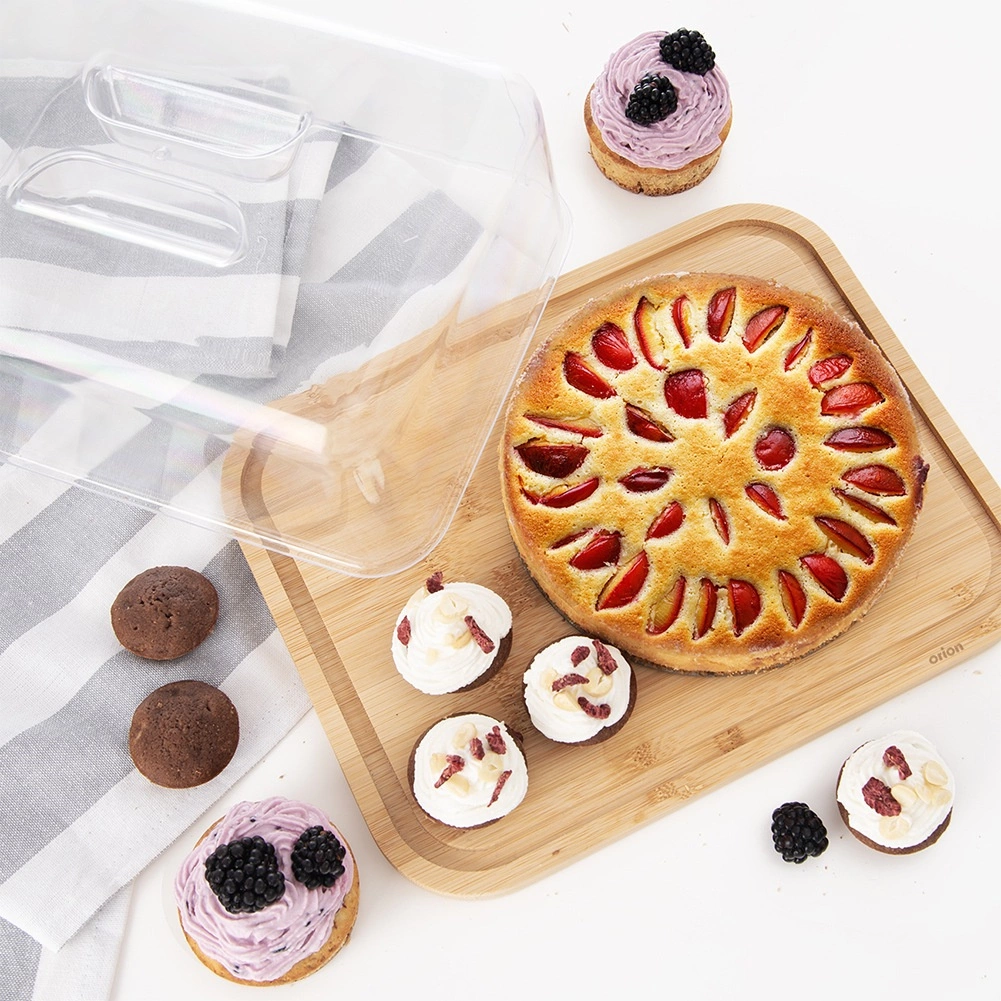 La tapa transparente con asa integrada protege los alimentos del polvo y los insectos y los mantiene frescos por más tiempo: ideal para servir en interiores y exteriores.
