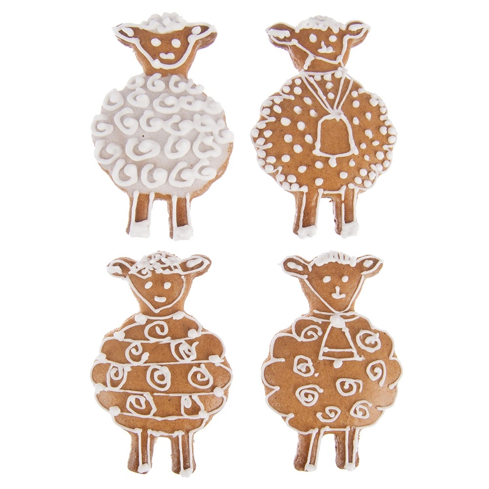 La silueta con orejas, lana ondulada y patitas permite crear adorables motivos en galletas, pan de jengibre y decoraciones de fondant.