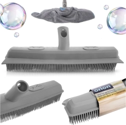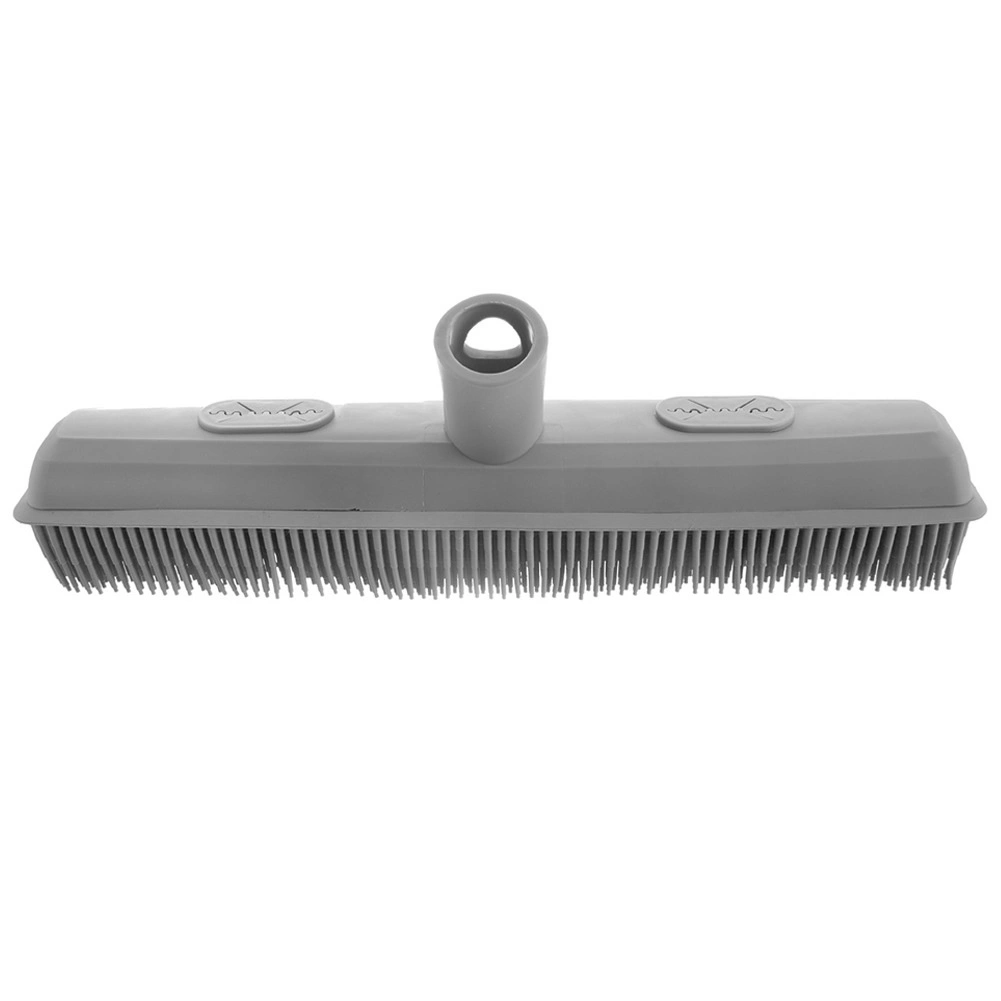 Las densas cerdas de TPR en color gris recogen polvo, cabellos y pelo de superficies lisas y alfombras. Sus propiedades antiestáticas evitan levantar la suciedad: ideal también para peluquerías.