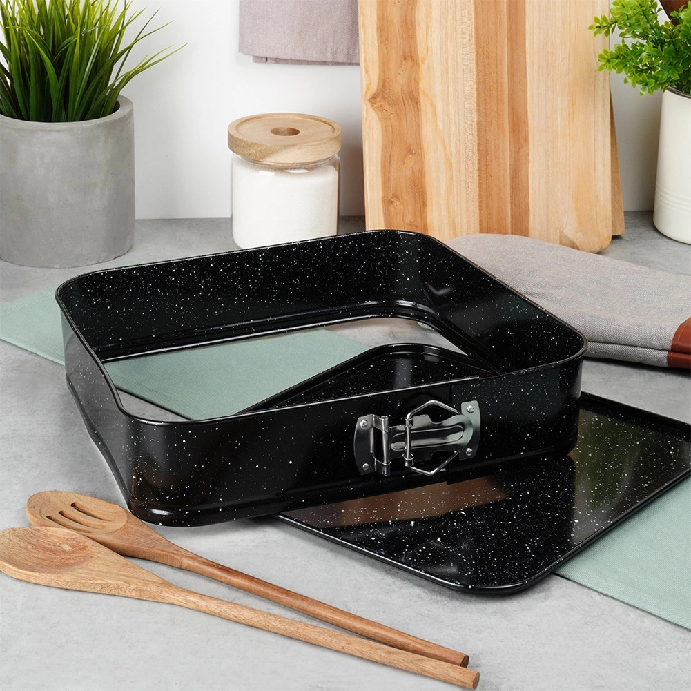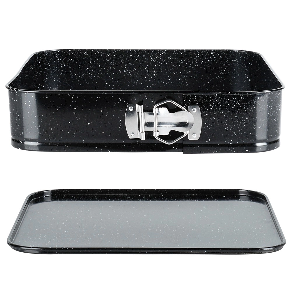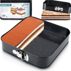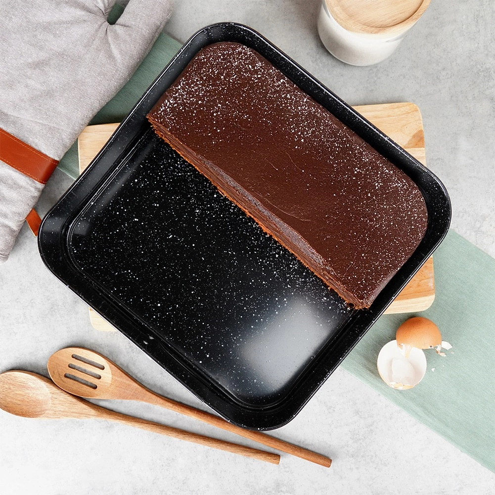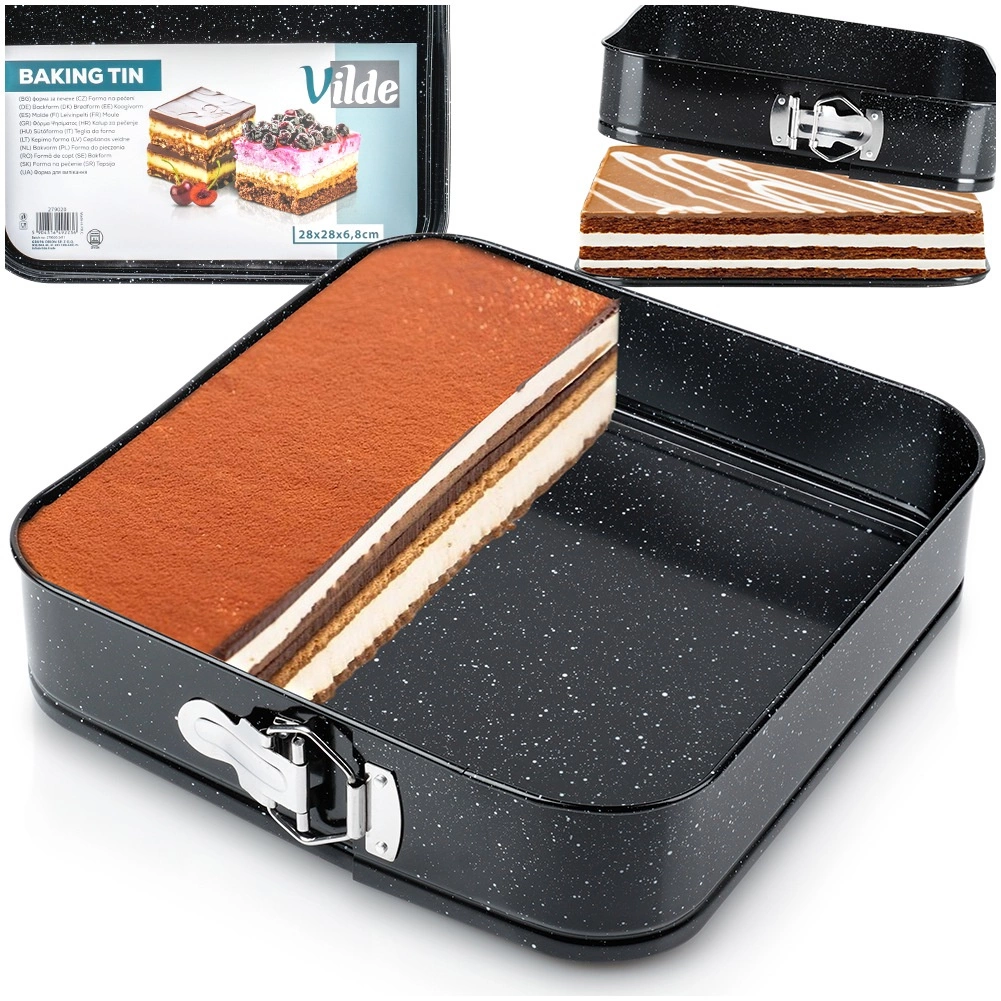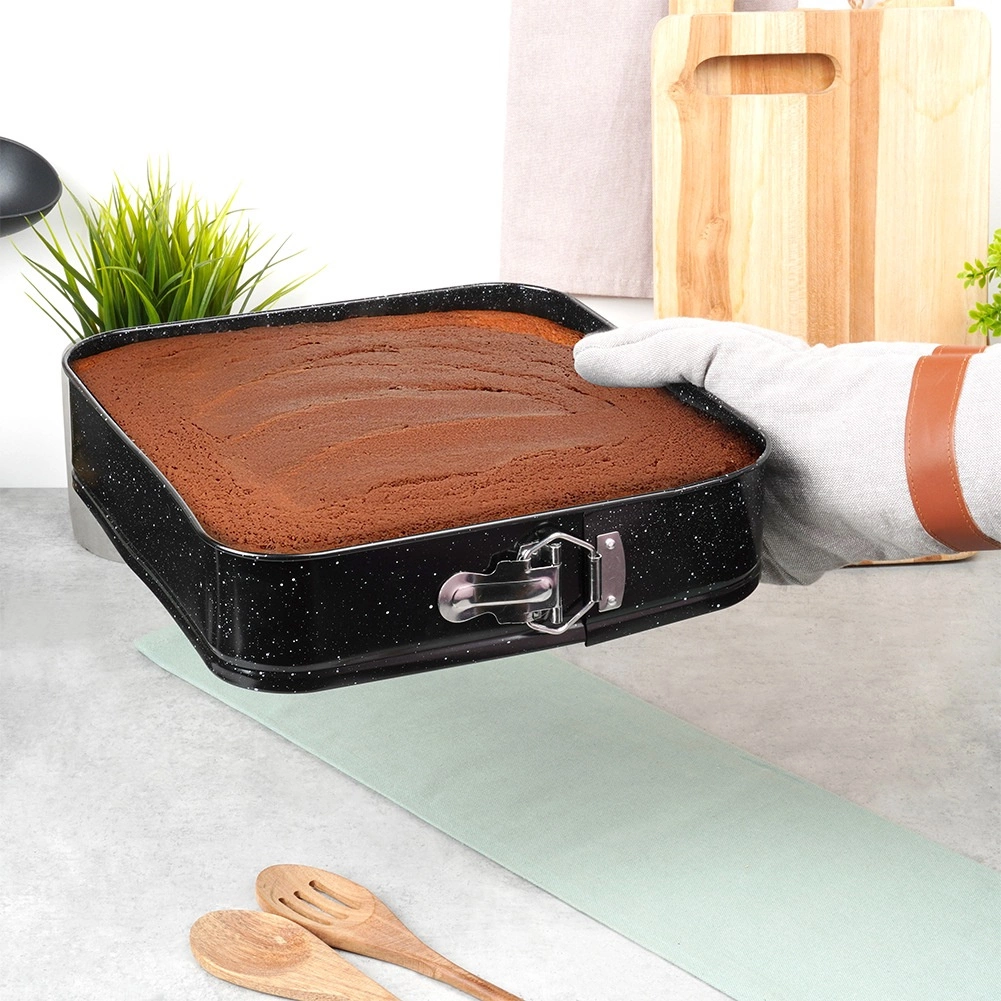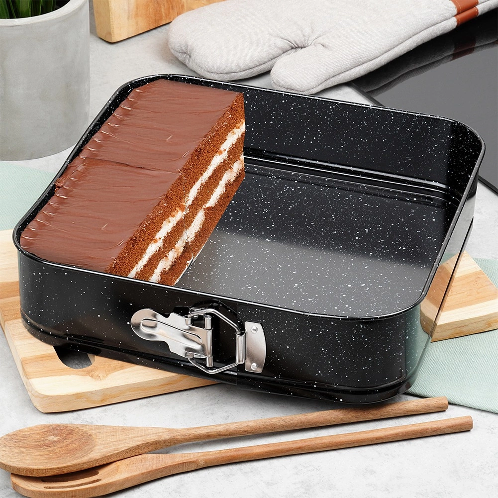 Este molde cuadrado desmontable de 28 × 28 × 6,8 cm es una excelente opción para el horneado diario. El cuerpo de acero al carbono de alta calidad con revestimiento granítico asegura una gran conducción del calor y minimiza que los alimentos se peguen. Abre fácilmente el molde con la hebilla lateral y, gracias al fondo extraíble, podrás sacar el bizcocho sin dañar su forma.