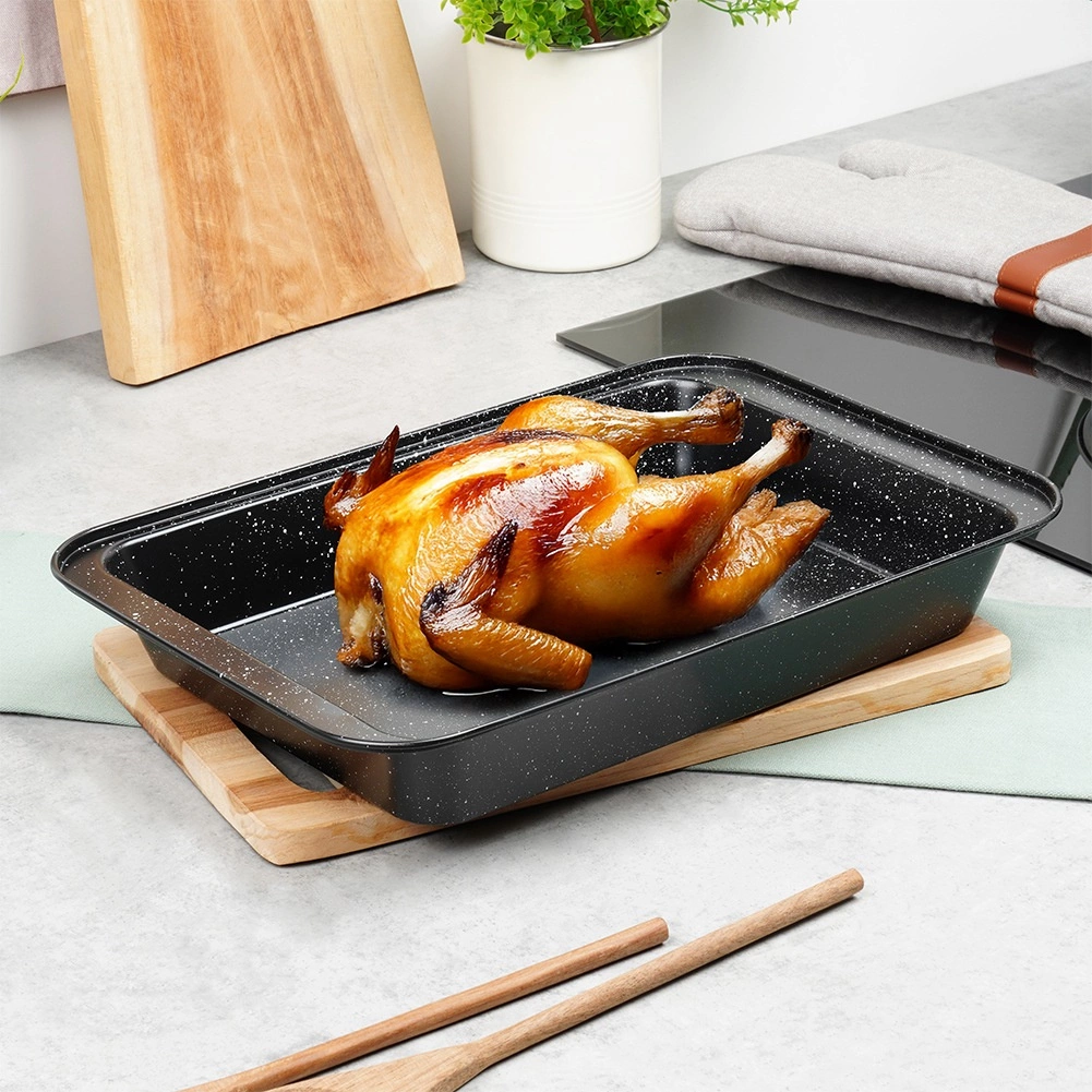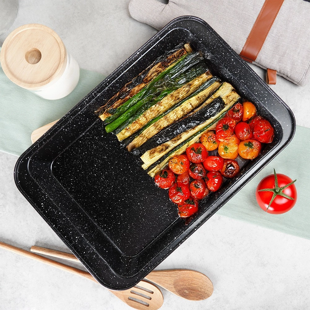 Bandeja para horno universal con revestimiento antiadherente de granito para asar carne, verduras, tartas e incluso pizza casera. Gracias a la distribución uniforme del calor, los bordes altos y la fácil limpieza, es la opción ideal para el horneado diario en hornos de gas y eléctricos.
