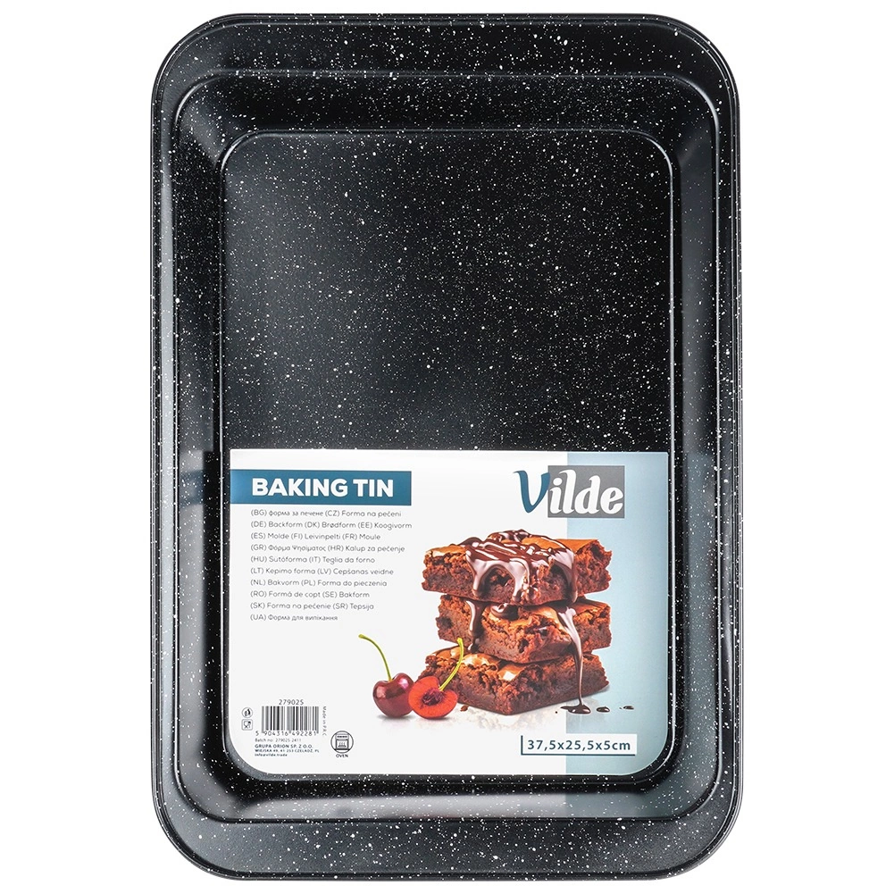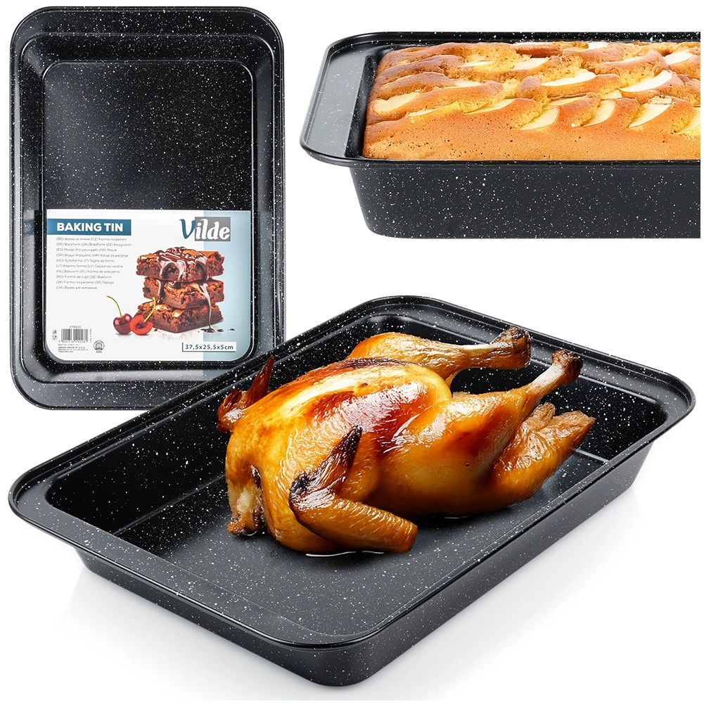 Los bordes altos ofrecen espacio suficiente para asados jugosos, platos gratinados o postres con relleno más alto. La bandeja es resistente hasta 230 °C, no absorbe olores ni líquidos y es apta para hornos de gas y eléctricos.