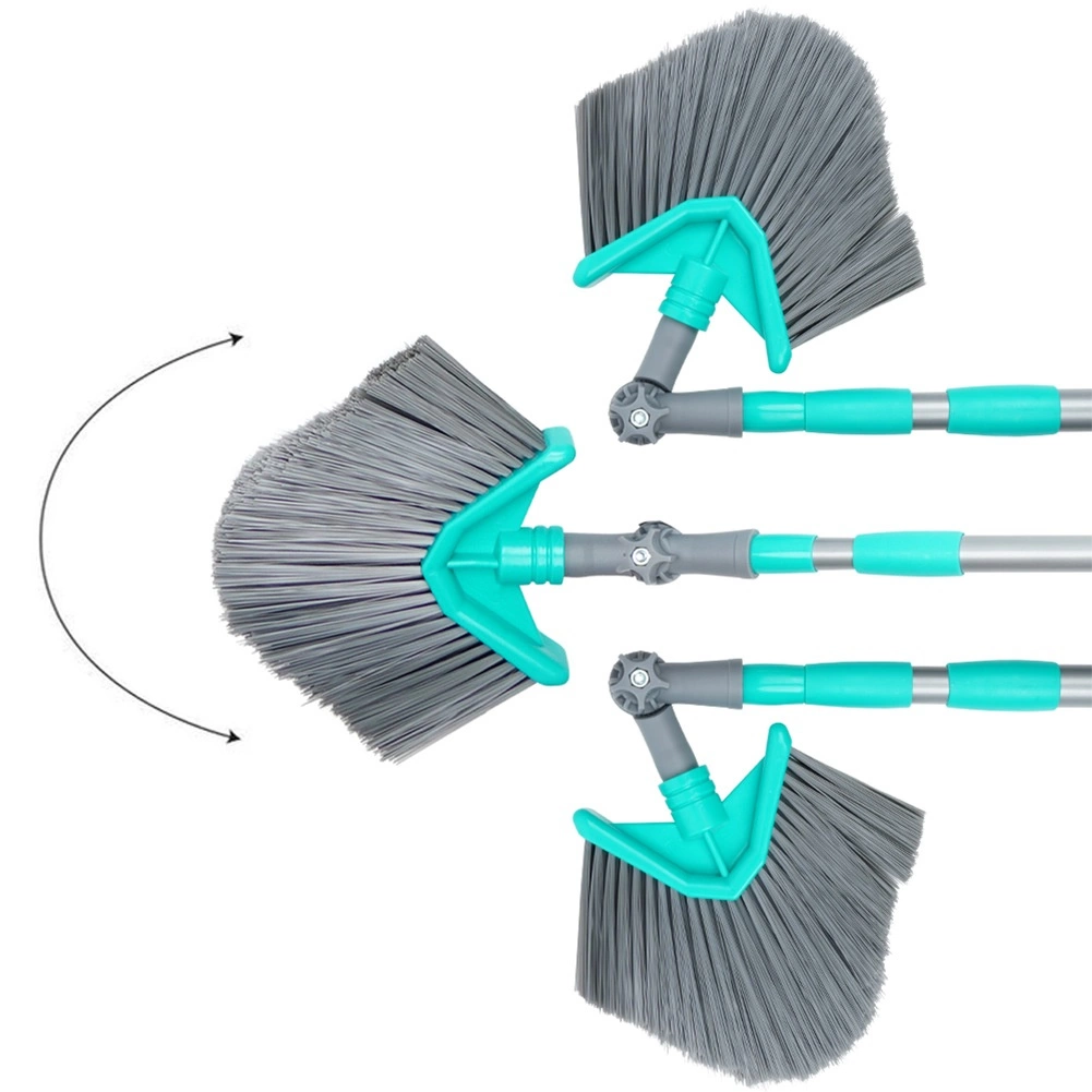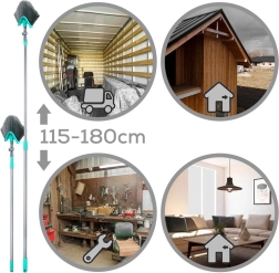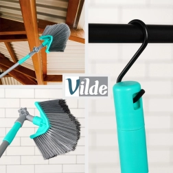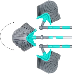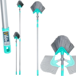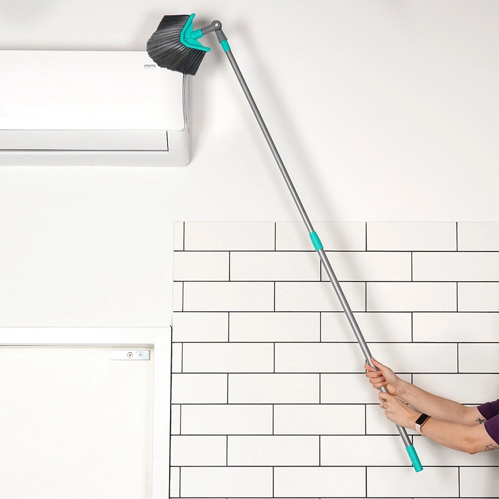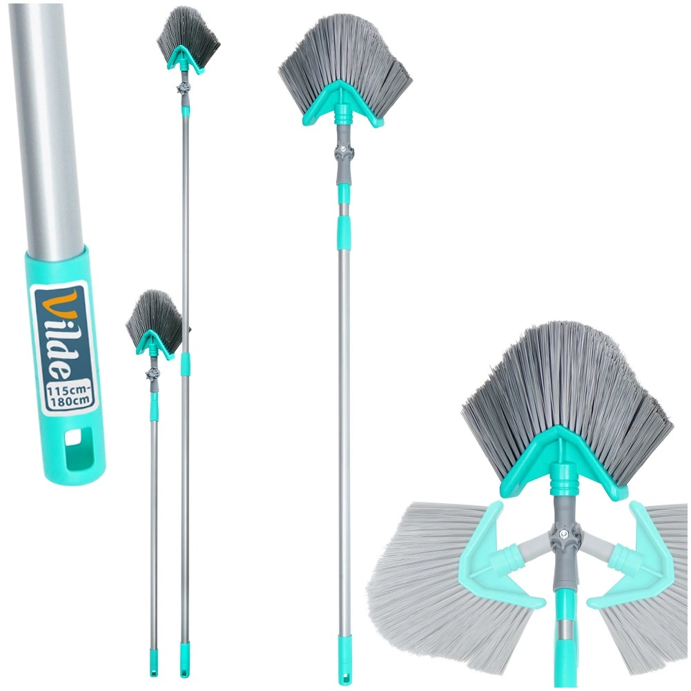 Esta escoba universal con vara telescópica puede con la limpieza incluso en lugares de difícil acceso. El cabezal triangular con giro y ajuste de ángulo limpia con precisión las esquinas, los bordes del techo y los estantes altos. Gracias a la regulación continua de la longitud de 115–180 cm se adapta fácilmente a tus necesidades y reduce la necesidad de usar escalera.