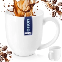 Elegante taza de porcelana MONA con capacidad de 450 ml en color blanco, ideal para el consumo diario de café, té y cacao. Ofrece un diseño clásico, asa cómoda y fácil mantenimiento en lavavajillas y uso en microondas. Se trata de una pieza outlet (2ª calidad) con pequeñas imperfecciones de fabricación que no afectan a la funcionalidad.