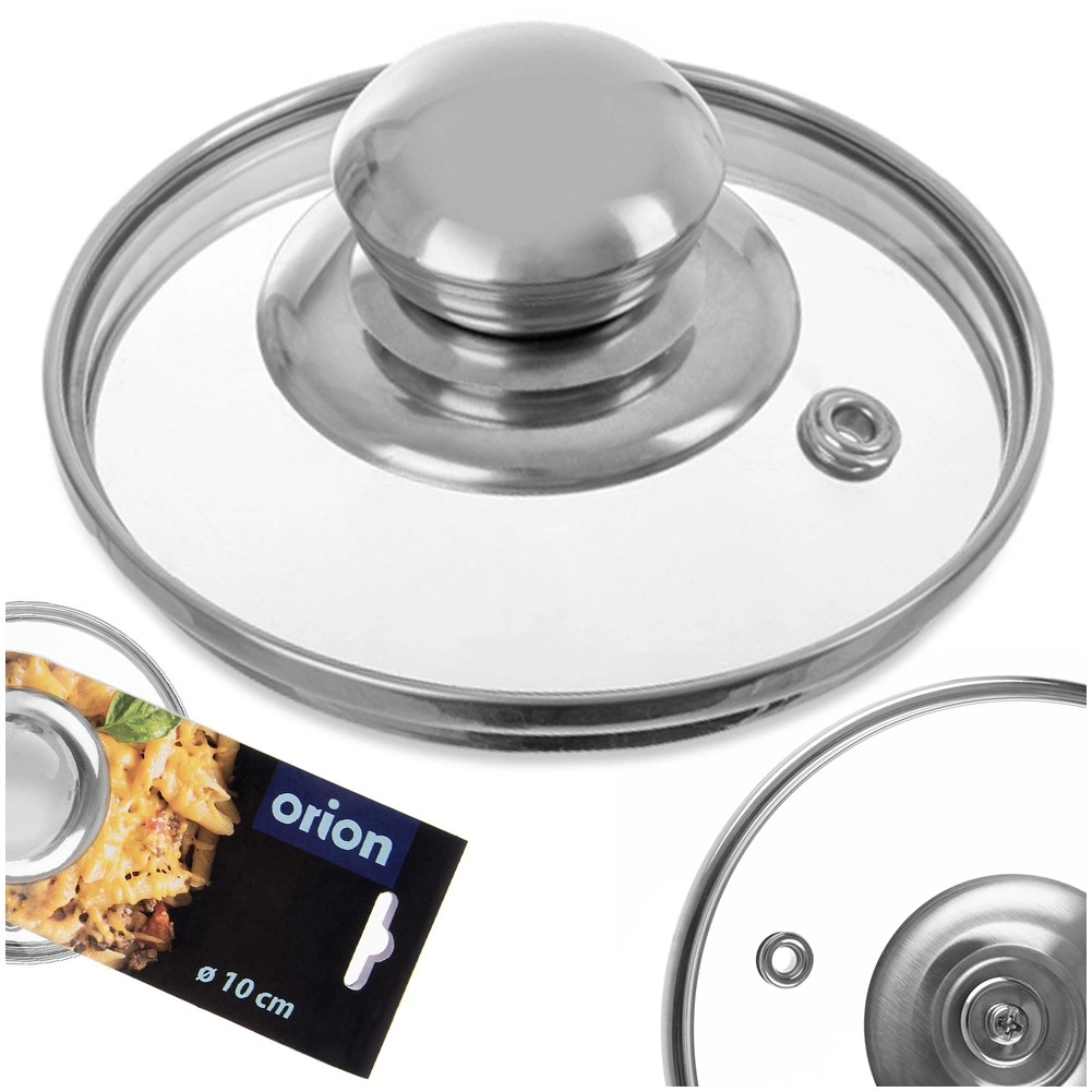 Tapa de cristal universal de 10 cm de diámetro con borde de acero inoxidable y asa robusta. Adecuada para ollas pequeñas, cazos y sartenes. Vidrio resistente al calor hasta 200 °C, diseño transparente para controlar la cocción sin levantar la tapa, orificio de ventilación contra la sobrepresión y apta para lavavajillas. Acelera la cocción y evita las salpicaduras de agua y grasa.