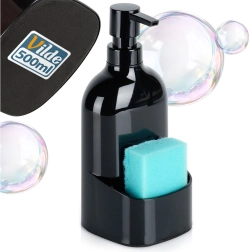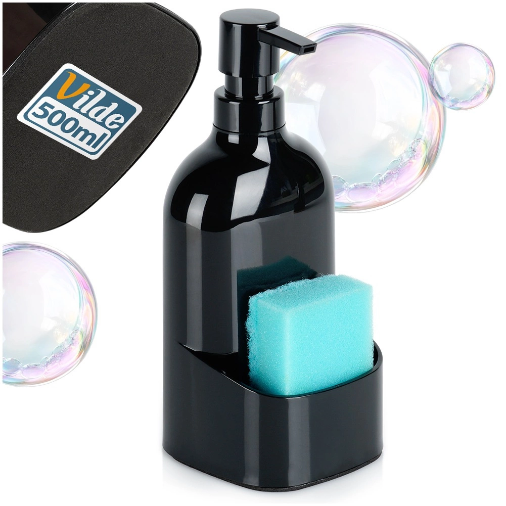 El elegante dispensador de detergente con organizador integrado para esponja o paño ayuda a mantener el área del fregadero limpia y ordenada. Gracias a sus dimensiones compactas, cabe incluso en encimeras pequeñas y su superficie negra y brillante combina perfectamente con interiores modernos y clásicos.