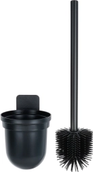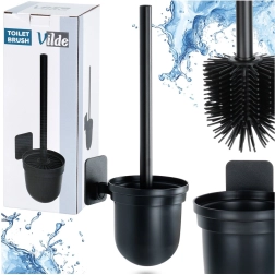 Práctico cepillo de WC de pared con escurridor y cerdas de silicona en elegante negro. Gracias al montaje en pared, ahorra espacio, facilita la limpieza del suelo y ofrece una limpieza del inodoro higiénica, rápida y eficaz. Las cerdas de silicona flexibles no dañan la superficie, se enjuagan fácilmente y no atrapan suciedad.