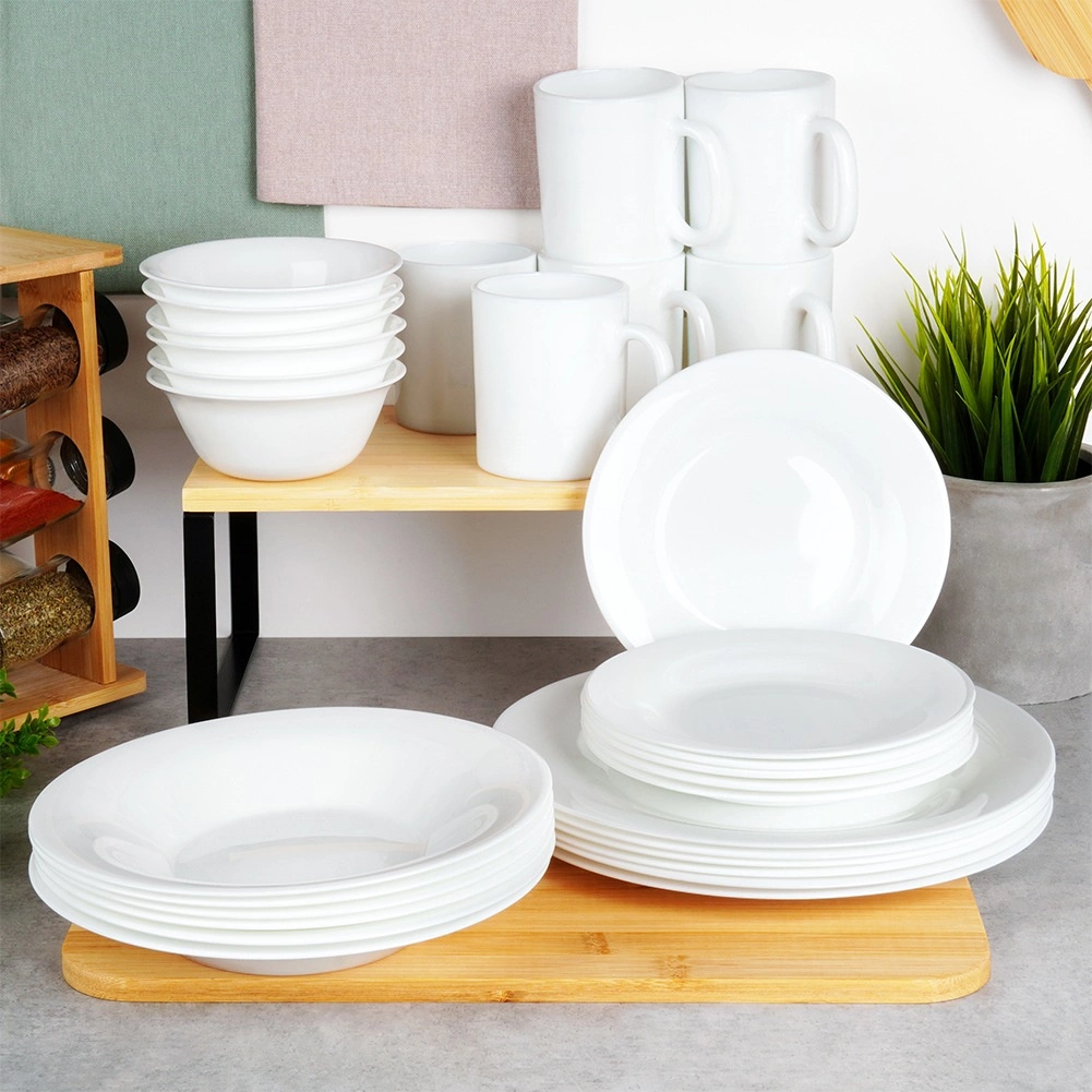 El vidrio opal es resistente, ligero y fácil de mantener. Puede lavar los platos en el lavavajillas y usarlos en el microondas para un calentamiento cómodo. El color blanco atemporal se combina fácilmente con otras piezas de vajilla y es adecuado tanto para el día a día como para ocasiones especiales.