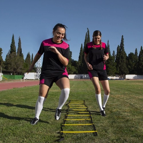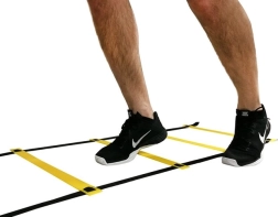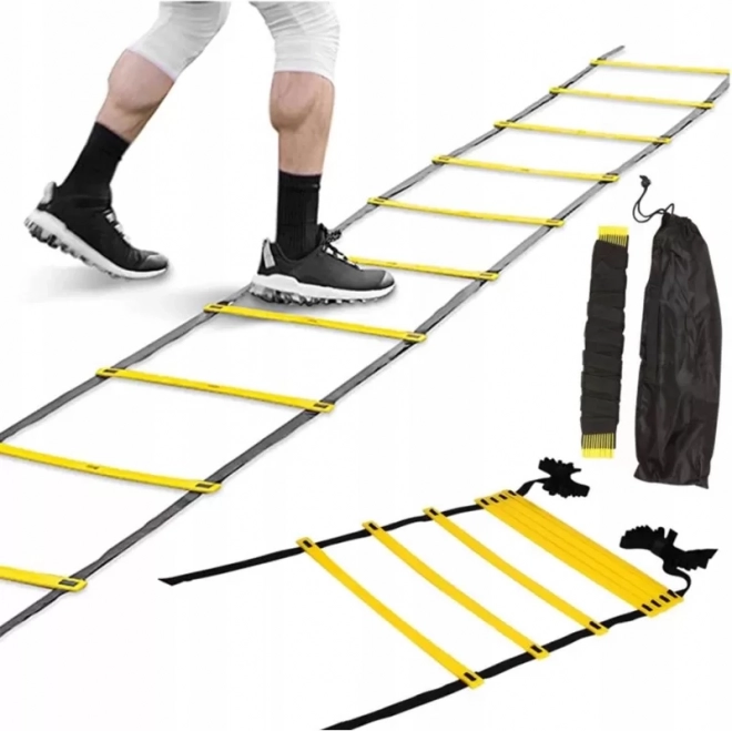 Escalera de entrenamiento universal para mejorar la velocidad, la agilidad y la coordinación. Gracias a los espacios entre peldaños ajustables, puedes adaptar fácilmente la dificultad y el tipo de ejercicio. Su diseño compacto se pliega a un tamaño reducido y, con funda práctica incluida, es ideal tanto para el gimnasio como para entrenar al aire libre.