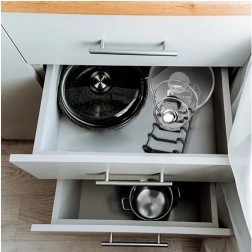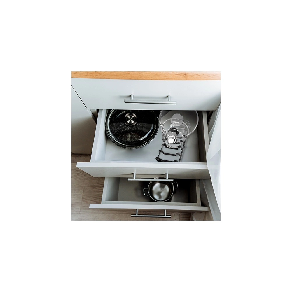 Adecuado para tapas, platos y tablas de cortar. Funciona de maravilla en la encimera, en el armario y en cajones profundos.