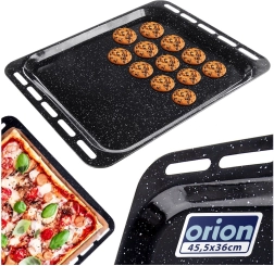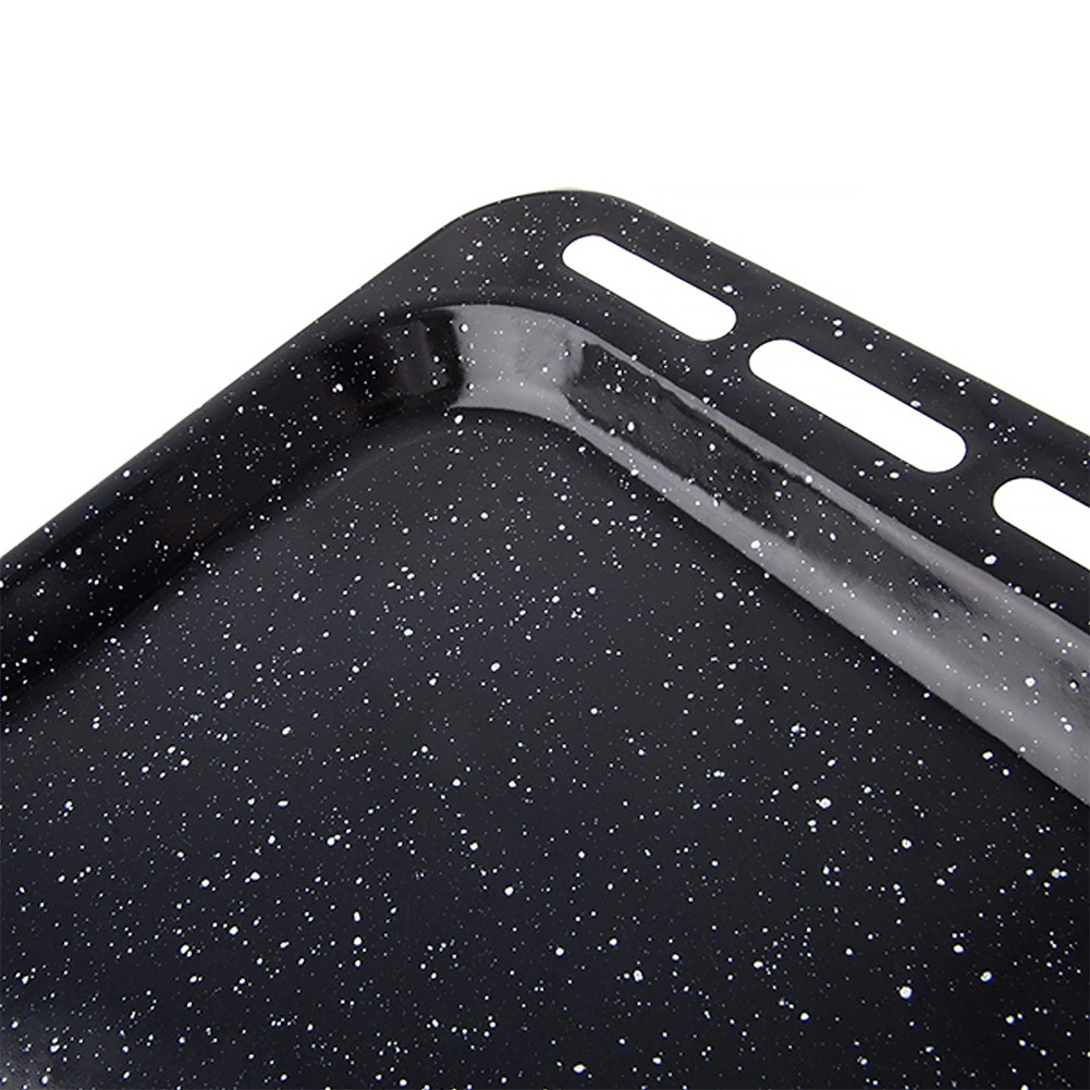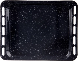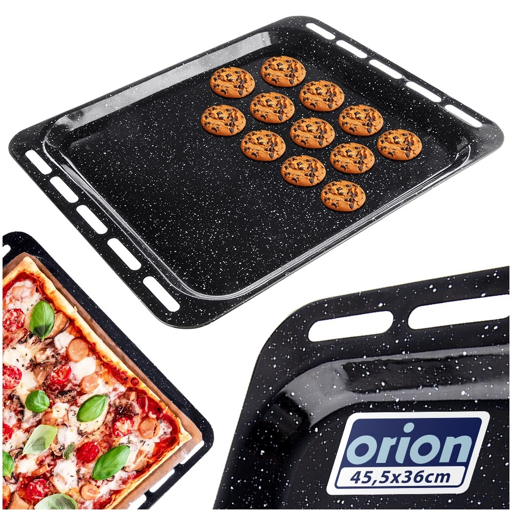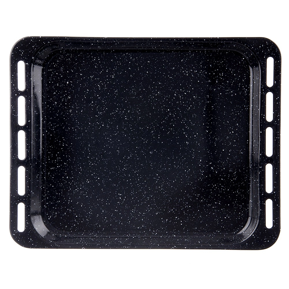 El acero robusto con capa esmaltada resiste altas temperaturas, es duradero y apto para hornos de gas y eléctricos. La bandeja ofrece dimensiones prácticas con tamaño exterior de 45,5 × 36 × 2,5 cm y área interior de aprox. 38 × 34,5 × 2,5 cm, proporcionando espacio suficiente para un horneado uniforme. Tras su uso, simplemente colócala en el lavavajillas.