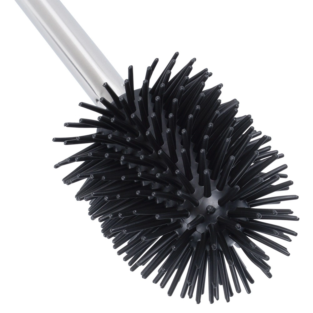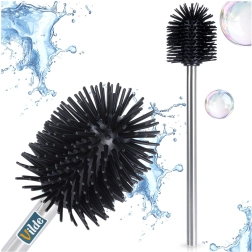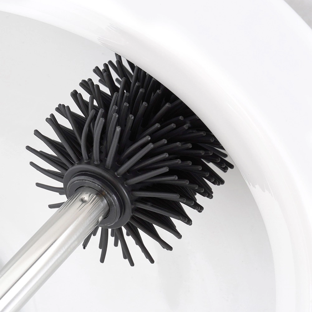 Práctico cepillo de WC de silicona de repuesto con longitud de 35 cm y cabezal negro para una limpieza higiénica y eficaz del inodoro. Las cerdas de silicona flexibles se enjuagan fácilmente, no retienen la suciedad y garantizan una larga vida útil. El mango de acero inoxidable se adapta perfectamente a la mano y encaja en la mayoría de soportes estándar para cepillos de WC.