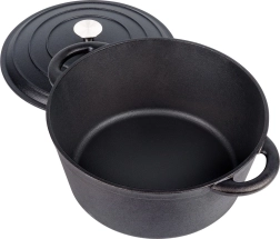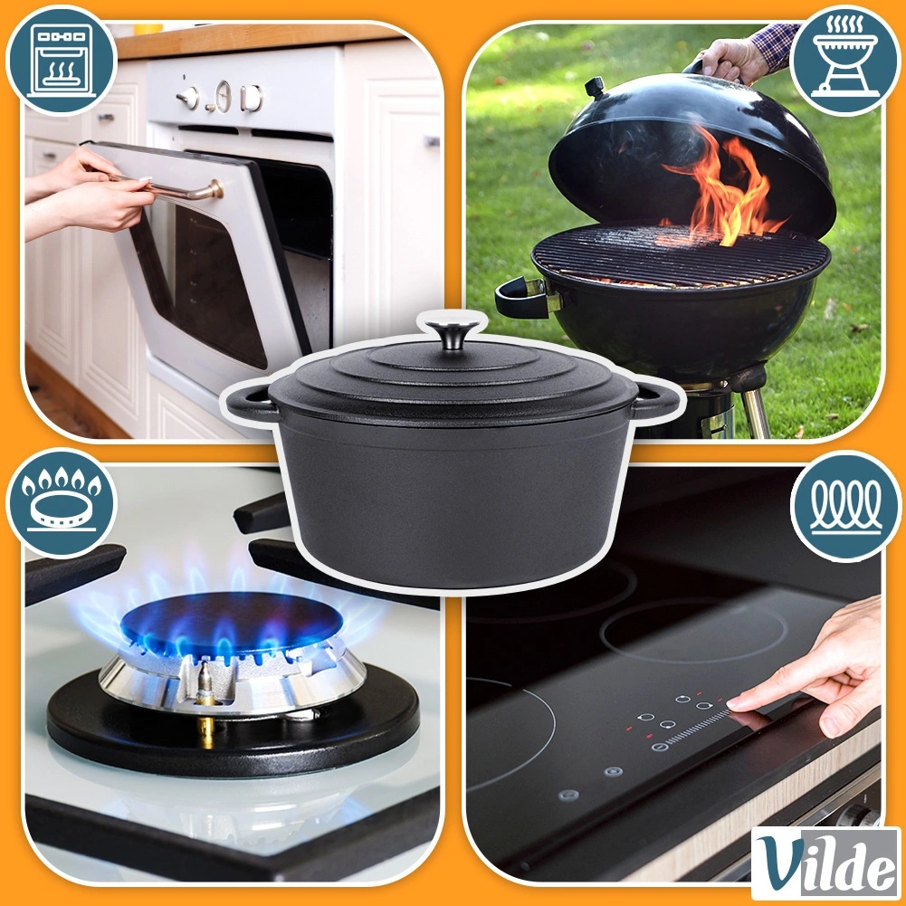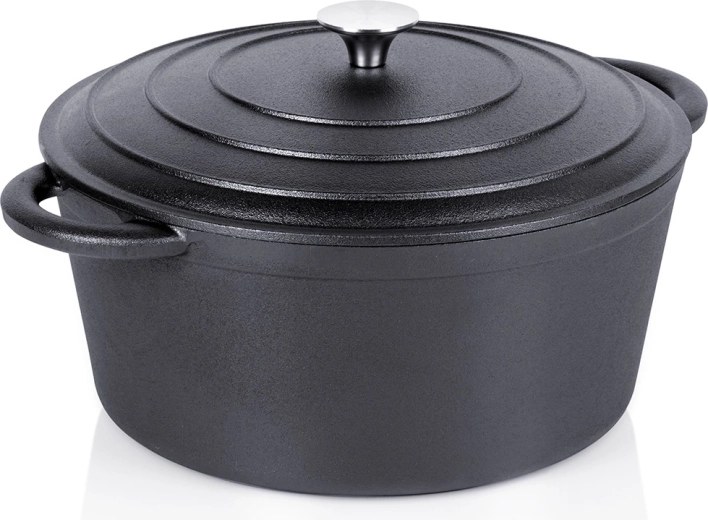 La olla resiste altas temperaturas y es versátil para cocinar, guisar, hornear y gratinar. Se puede usar en cocinas de gas, eléctricas, vitrocerámicas, halógenas e inducción, en el horno, en la parrilla e incluso directamente sobre el fuego: perfecta tanto para la cocina del hogar como para acampadas. Gracias a su excelente conducción térmica, puedes servir directamente de la olla y los alimentos permanecerán calientes por más tiempo.